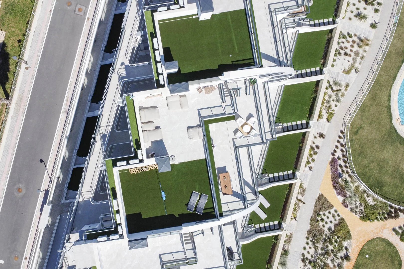 With 84.90 m2 of usable space and a terrace on the same floor of 51.46 m2, this penthouse offers space and comfort. You enter an elegant hall with a spacious double bedroom on the left and a bathroom on the right. The hall leads to a living room, where the spectacular sea view immediately catches the eye and where sliding windows give access to the terrace. The modern, fully equipped kitchen is adjacent to the living room and also has direct access to the terrace. Further down the corridor is a second double bedroom with terrace connection and at the end of the corridor is the master bedroom with an en-suite bathroom, dressing room and also direct access to the terrace.