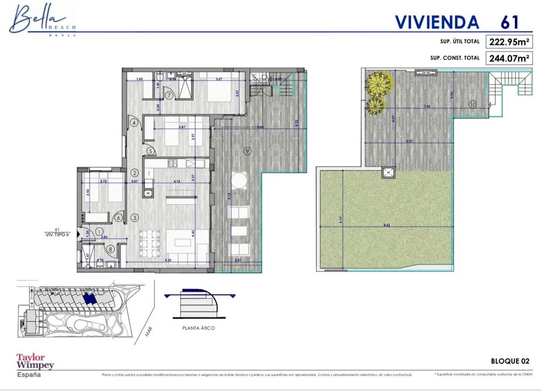 This exclusive penthouse has stunning sea views from all rooms and also has a roof terrace of no less than 94.85 m2 where you can enjoy spectacular 360° views. To the east, the coastline stretches past Gandia, to the west the Montgó mountain stands out, to the north you look directly out to the sea and to the south you have views of the impressive Sierra de Segaria mountain range.