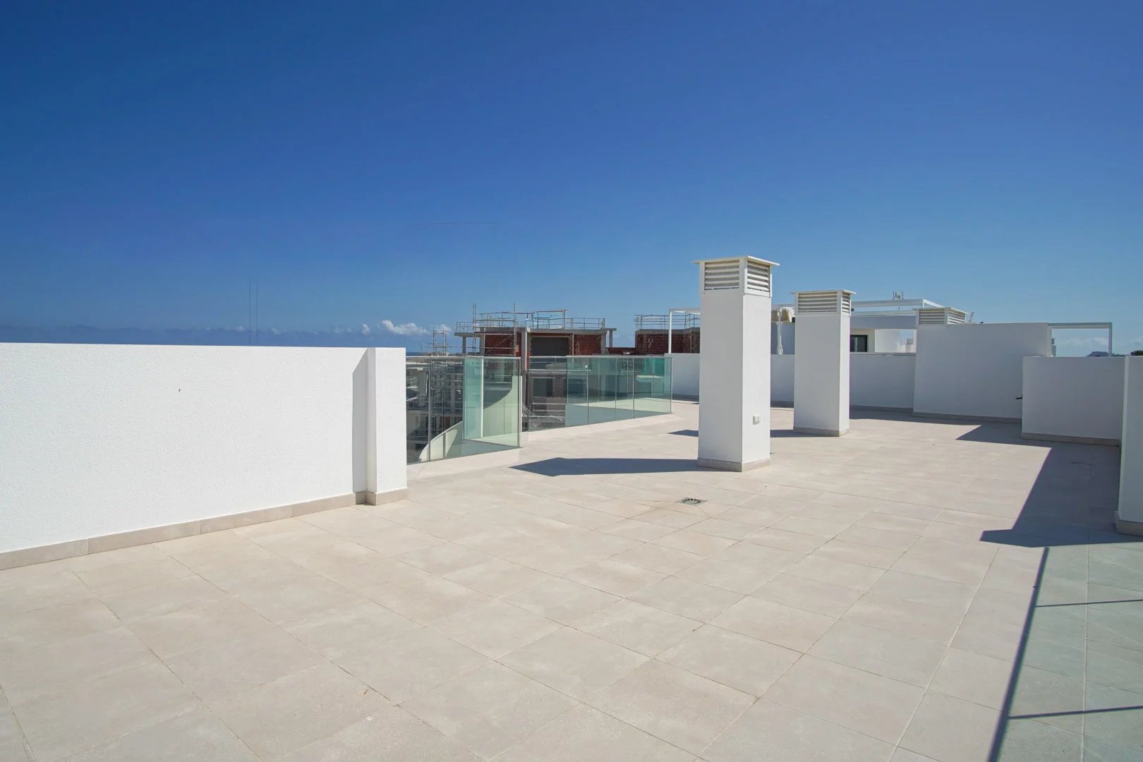 Maar het meest bijzondere plekje bevindt zich ongetwijfeld op de bovenverdieping: een spectaculair privésolarium met 360 graden uitzicht over de zee en de bergen, perfect om te ontspannen, familiemomenten te delen of te genieten van onvergetelijke zonsondergangen. Het penthouse is met oog voor detail gebouwd en biedt hoogwaardige afwerkingen: PVC-buitenschrijnwerk met emissiearme dubbele beglazing, gemotoriseerde jaloezieën in de slaapkamers, porseleinen vloeren, een keuken met een Silestone-aanrechtblad, badkamers met designdouches en wandclosets, en inbouwkasten met ledverlichting. De woning beschikt over aerothermische warmwaterproductie, voorgeïnstalleerde airconditioning en praktische details zoals USB-opladers in de slaapkamers en stroom- en tv-aansluitingen op de terrassen en het zonneterras.