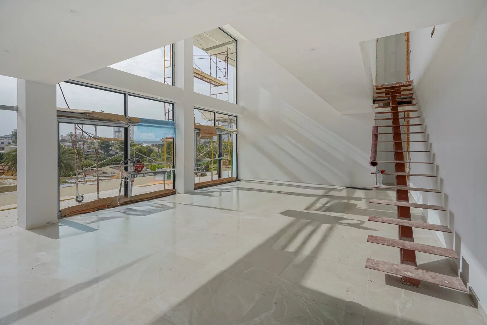 Deze ruime, moderne villa wordt gebouwd op een vlak perceel in de rustige urbanisatie Partida La Merced op wandelafstand van het strand en het centrum van Calpe en zal in januari 2026 worden opgeleverd (onder voorbehoud).
